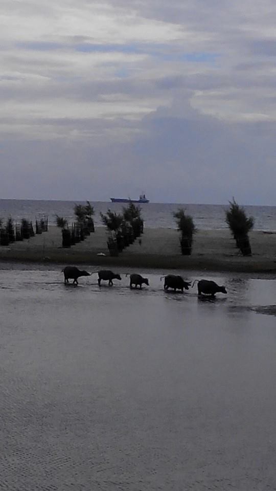 Foto : Kawanan kerbau melintas di kawasan rehabilitasi Pantai Amping Parak
